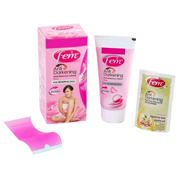 Fem Rose Anti Darkening Hair Removal Cream 40 g (With Anti Darkening Moisturizer Sachet 15 g)